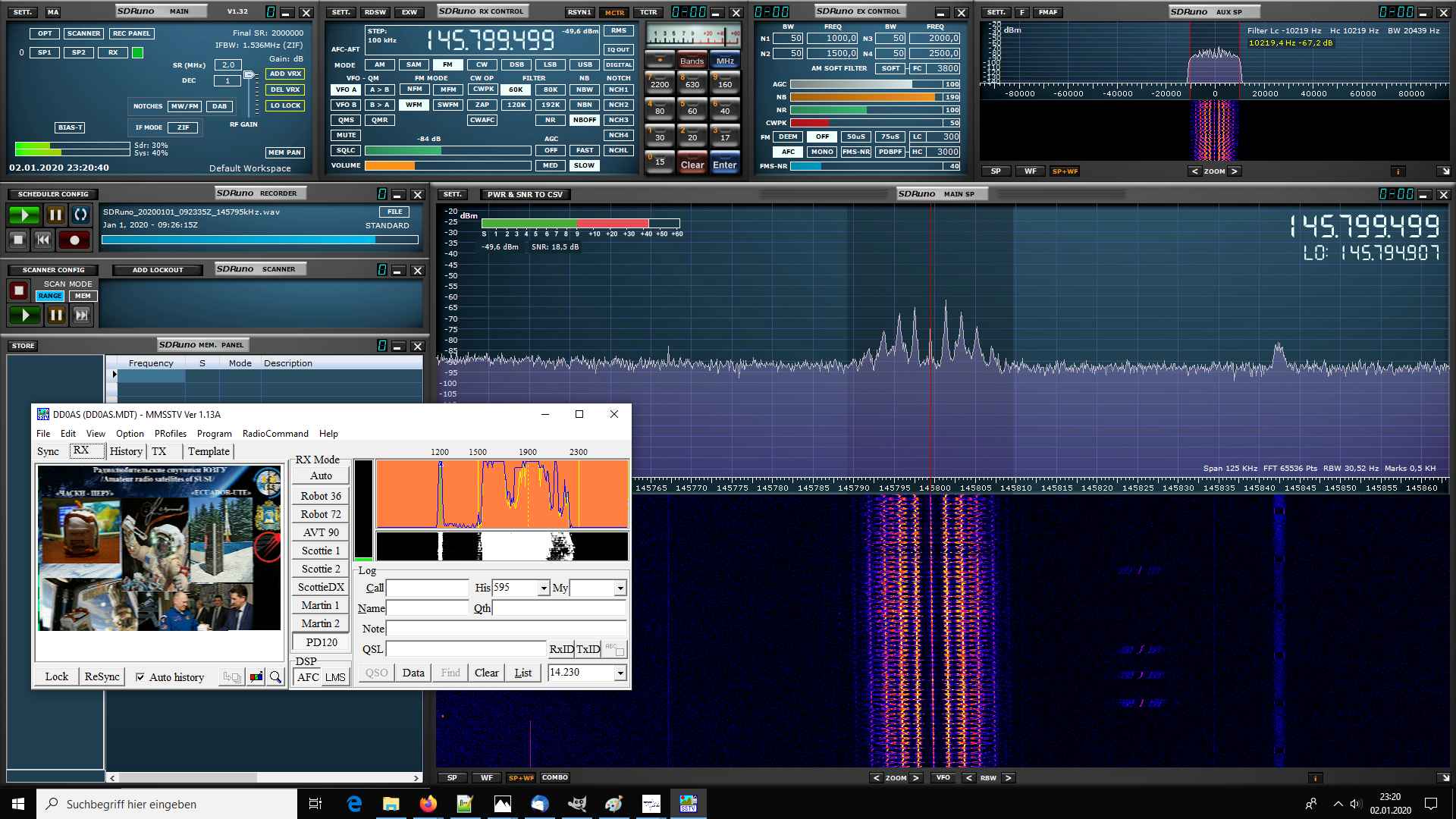 A view to the primary used tools, SDRuno v1.32 and MMSSTV 1.13A